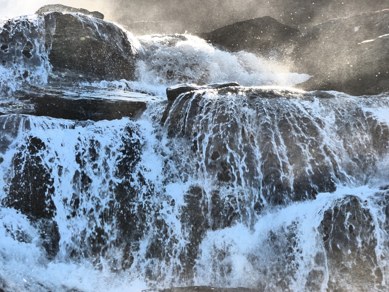 Att vandra utmed vattendrag är spännande för det händer att man måste korsa tillflöden och vada genom vatten, men vid etablerade rutter är det mer vanligt att man hittar broar spångar eller stenar att hoppa mellan. Den här vandringen hade ett par ställen där vi fick kliva på stenar och ta oss igenom spektakulära korsningar där vattnet forsade ner från fjället mot forsen.