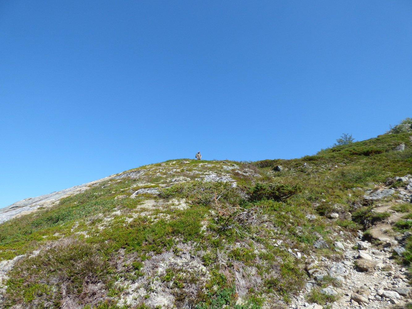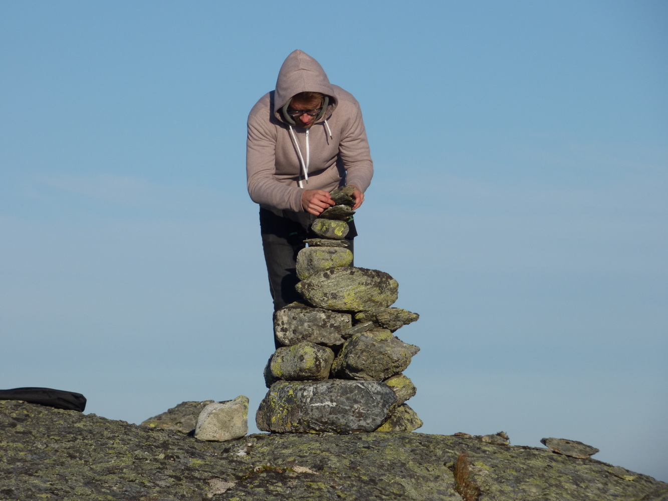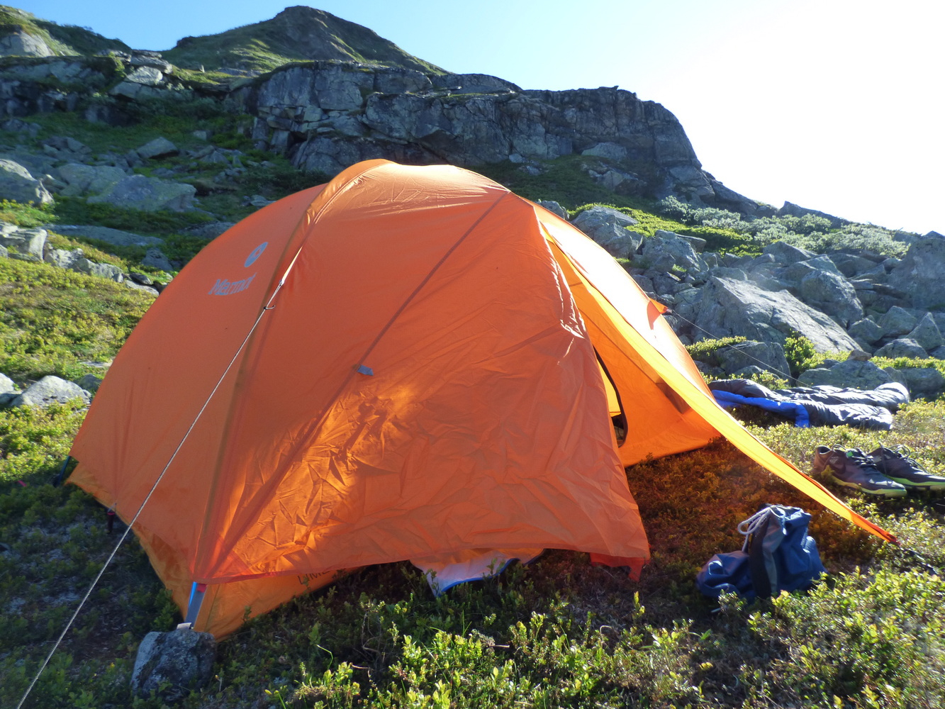 På morgone steg solen sakta över fjället och man kunde ana att det skulle bli ännu en vacker dag. Att se de första solstrålarna på berget mitt över dalen och att sitta utanför tältet och äta frukost var något alldeles extra. Idag skulle vi göra en topptur till ett närliggande berg. Vi packade lätt med bara något skyddande plagg, vatten och för min del kamera med stativ, då vi räknade med att inte behöva äta eller oroa oss för vädret på den här relativt enkla bergstoppen.