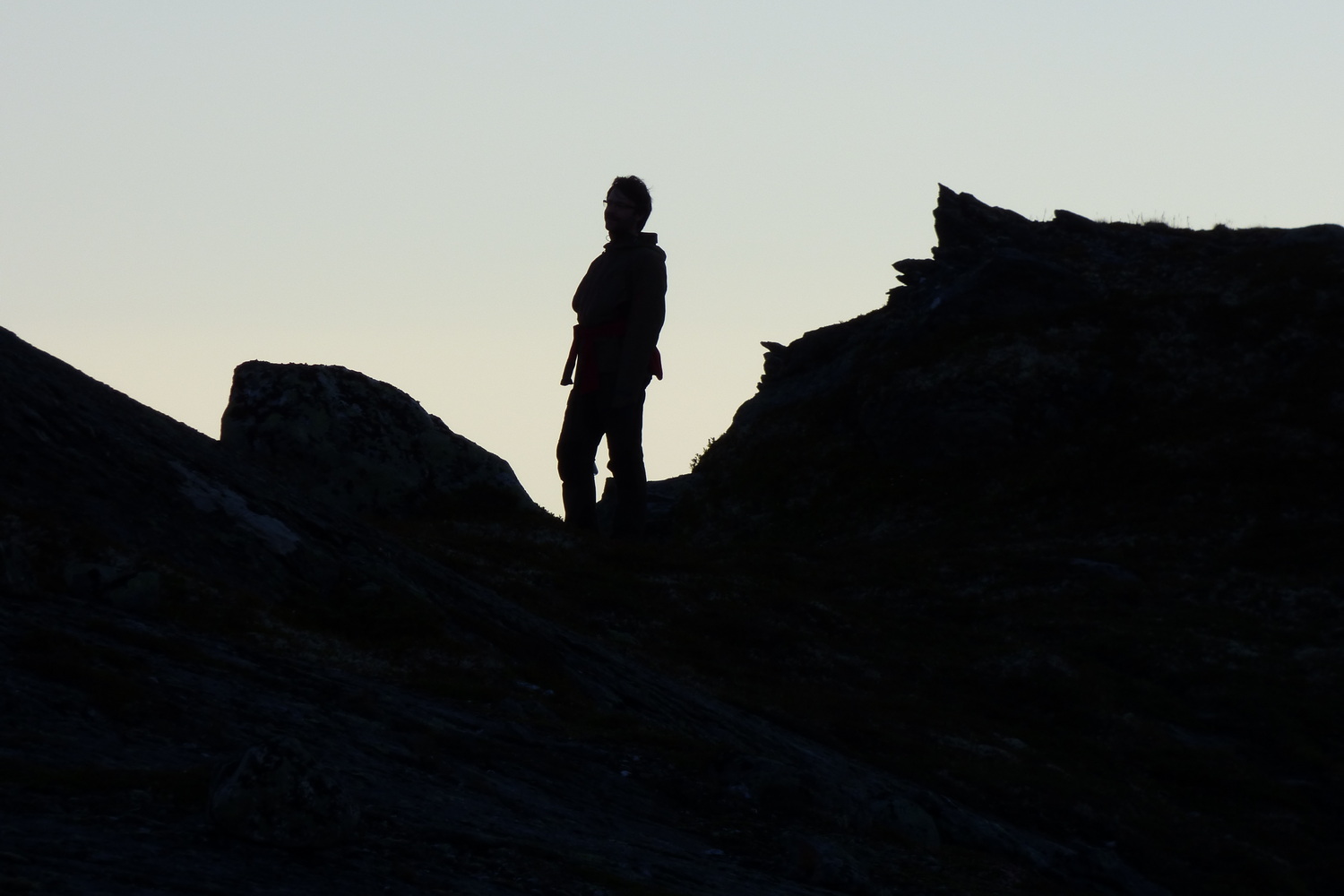 Att göra en topptur och bestiga ett berg är alltid en speciell känsla. Man vet inte allt som kan dyka upp och det är som ofta så att vädret uppe på fjället är blåsigare än nere i dalen. Men ibland är det vindstilla och har man en sådan dag och dessutom med god sikt så får man se fjällen från sin absolut bästa sida. Som när man kan se skuggor och ljuset som spelar över det böljande landskapet. Vi kom fram till en rygg som vi skulle följa och med solen lågt över horizonten så får man ett ljus där det är möjligt att ta spektakulära bilder.