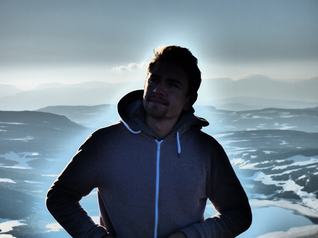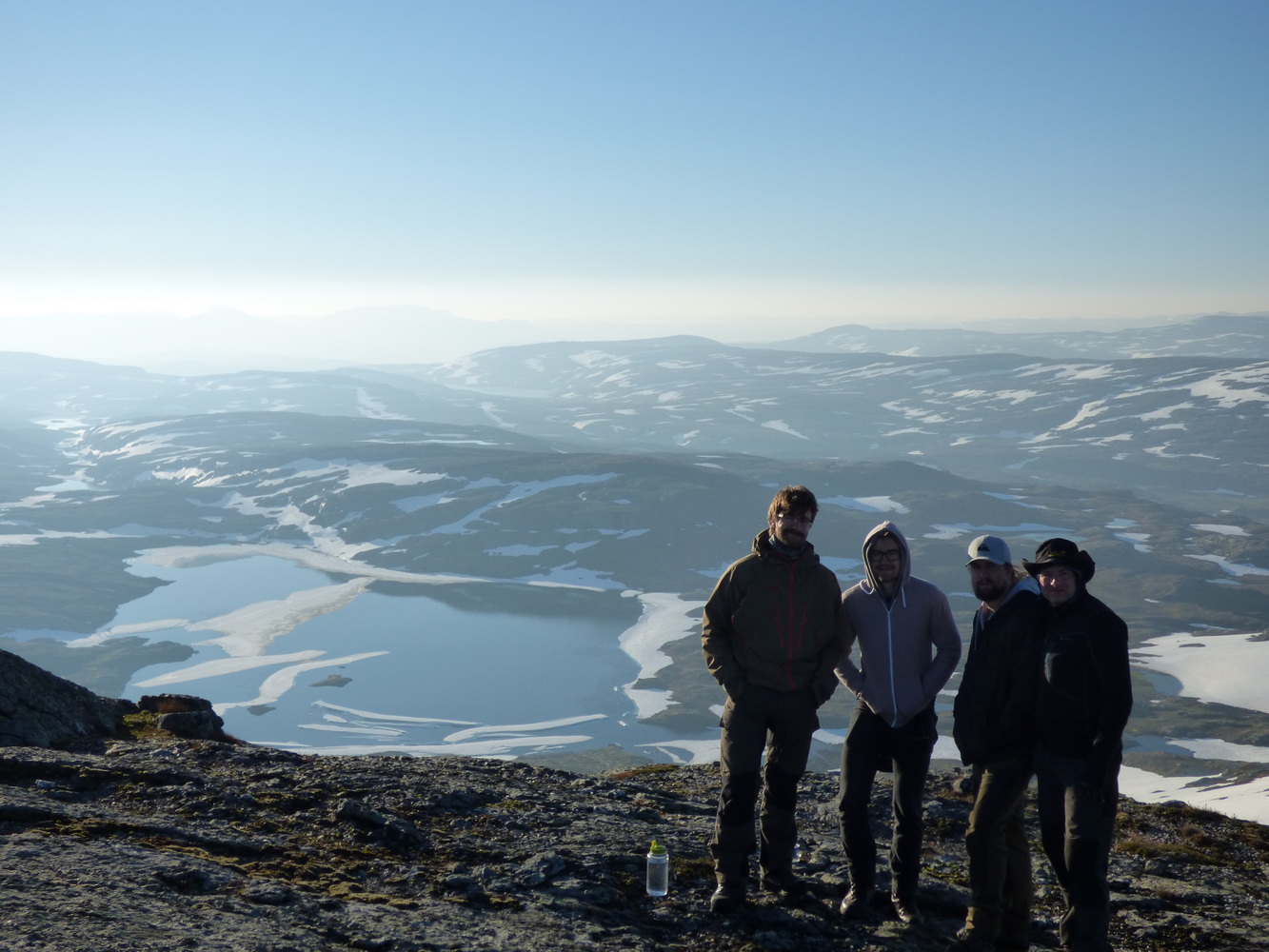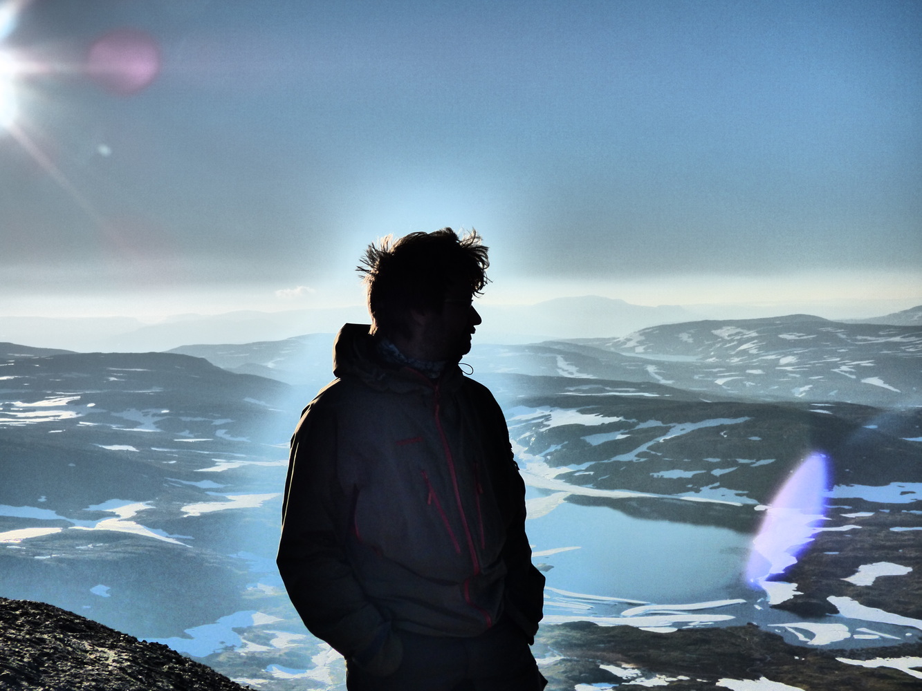 När man kommer upp och kan se landskapet i sin fulla prakt från ovan är det en väldigt härlig känsla. Det här var nog den bekvämaste toppturen jag upplevt. Fjällvärlden log mot oss och jag njöt och log tillbaka. Vi spenderade en stund i lugnet på toppen och lekte med att göra några annorlunda porträtt i den här världen bortom molnen.