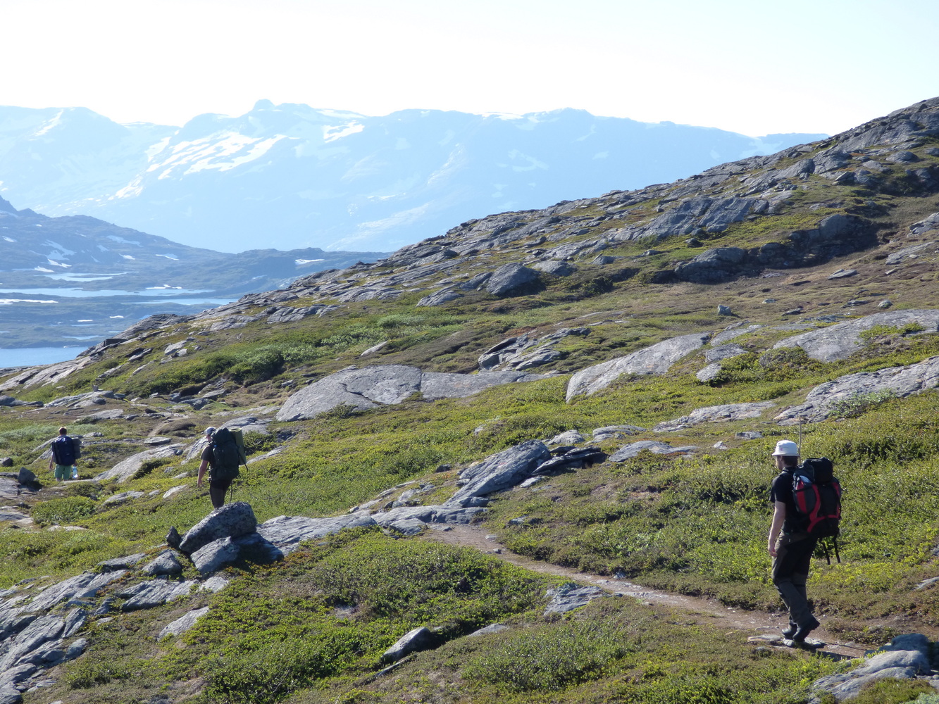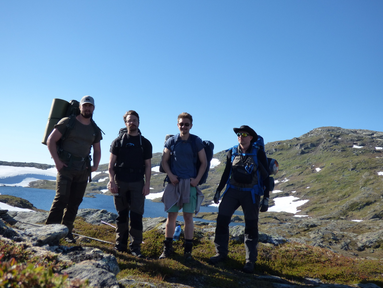Vi hade en skön paus med mat och vila innan det var dags att hitta kraften och sätta på ryggsäcken igen. Det var en lång väg tillbaka genom flera vackra landskap och till sist återstod bara den brutala nedstigningen mot fjorden som är nästan som en vägg på 1000 meter när vi var framme ovanför Lofthus. Vi gick i sicksack ner i flera timmar trots att det bara var några hundra meter i sidled men branten gjordes inte snabbt. Det var redan mörkt vid det laget och vi var fyra mycket trötta äventyrare som till sist stod på vägen och kunde säga att vi gjort en fantastisk tur.