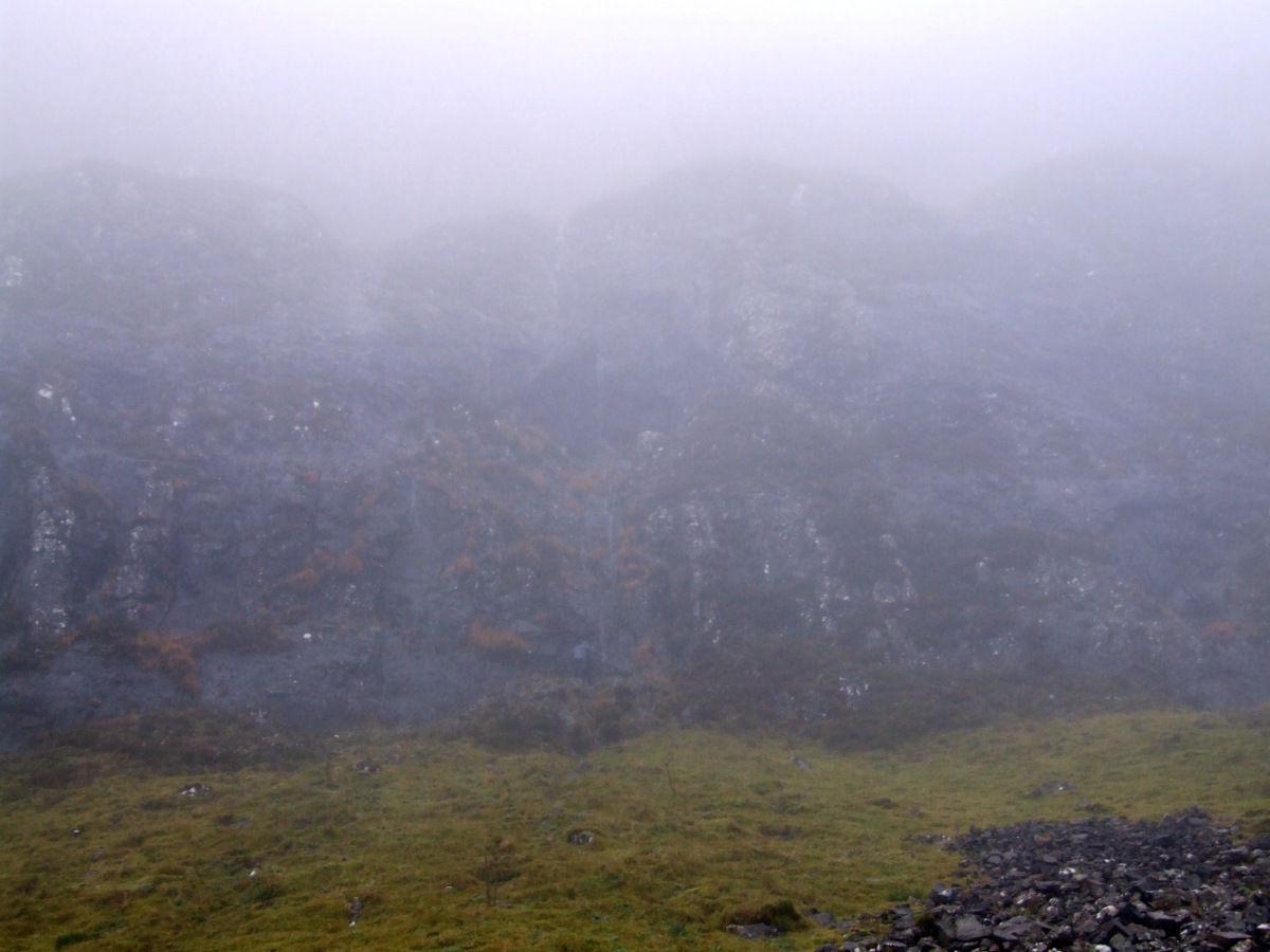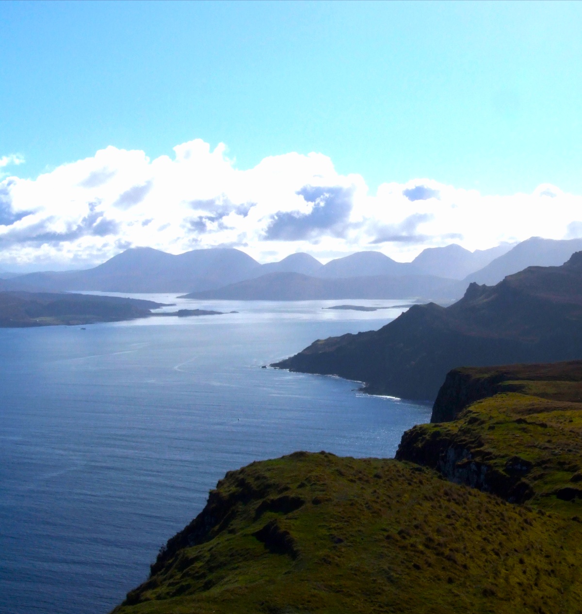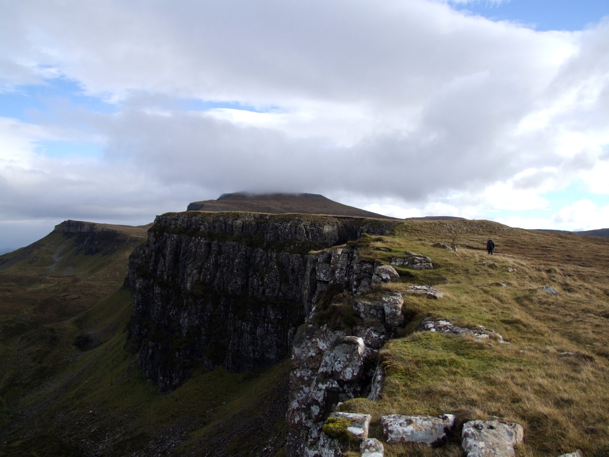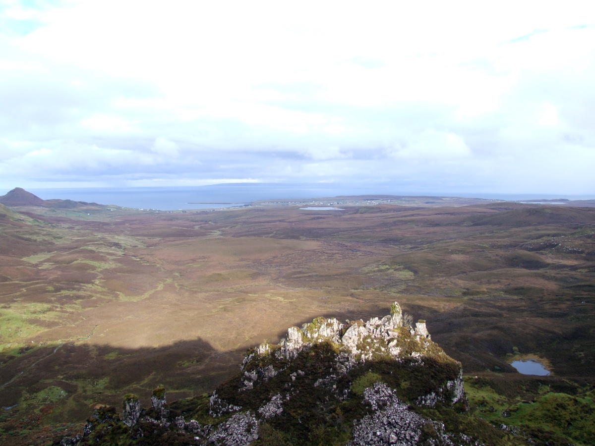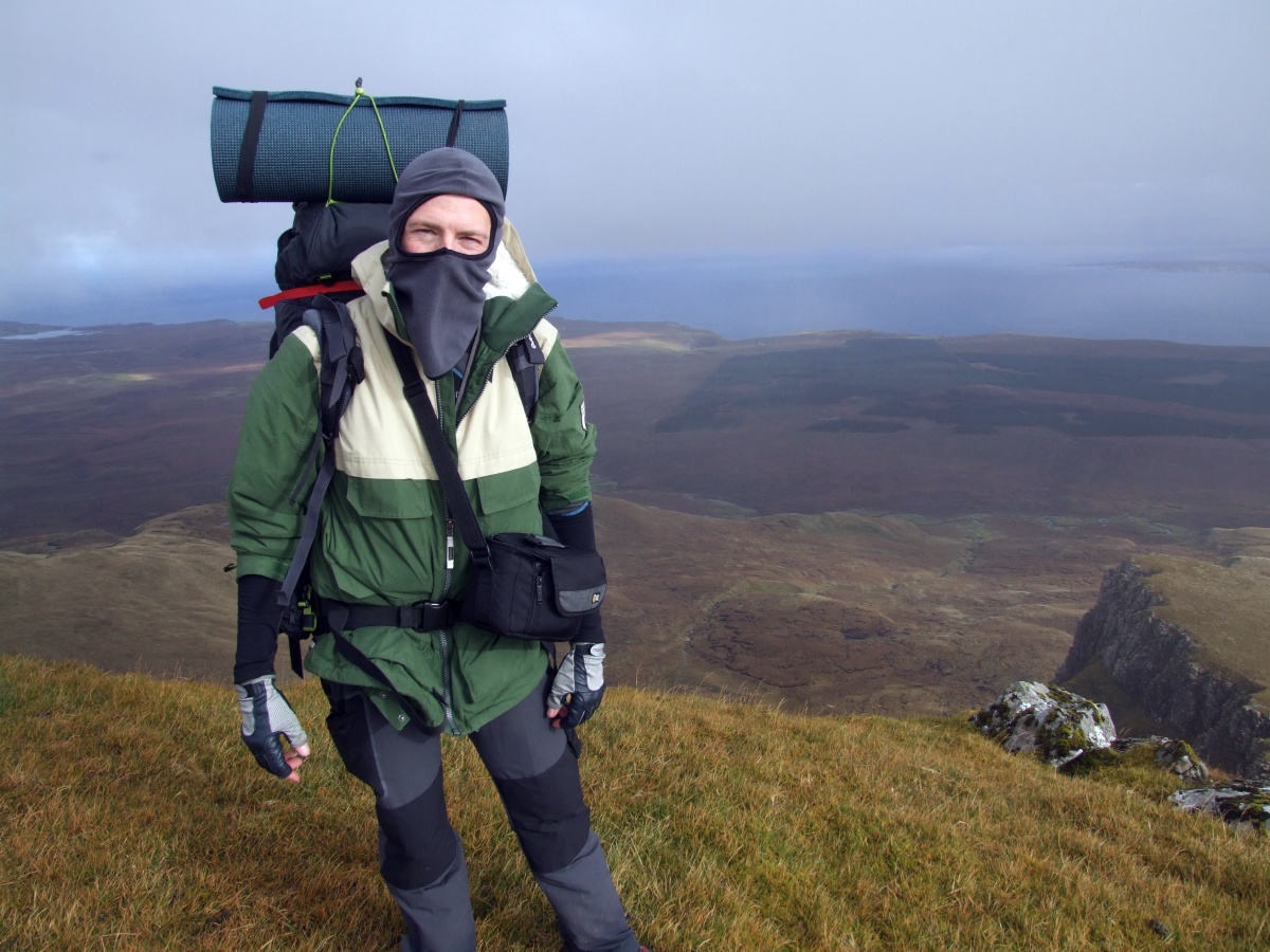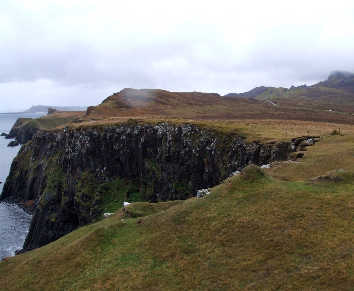Vandring skulle ta oss från norra udden på Isle of Skye över en förkastning "Trotternish ridge" som löper utmed "Trotternish peninula" på norra delen av Skye och förbi denna klippa. Det innebar att vi skulle vandra utmed ett brant stup flera dagar innan den lilla pitoreska byn Portree sedemera bli vår slutdestination. Jag hade hittat en internetsida med information om denna vandring och eftersom mycket av leden är omarkerad så var det till stor hjälp att ha leden i form av gps koordinater i en liten handhållen Garmin GPS som jag hade med mig. Här uppe skulle dimman visa sig bli lika mystisk som på film och utan god kännedom så skulle man lätt kunna gå vilse.