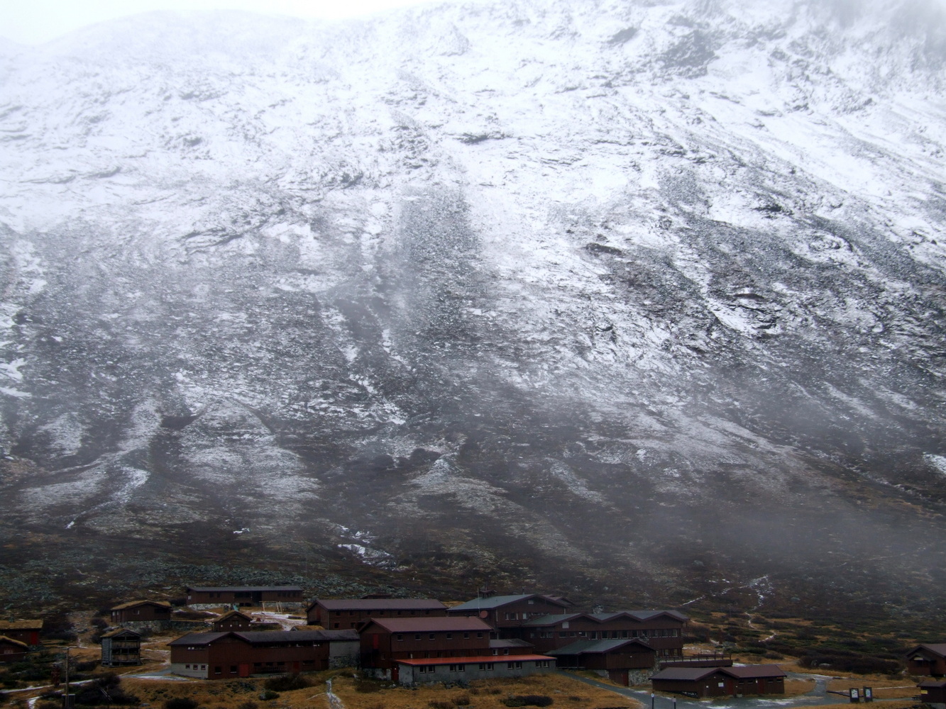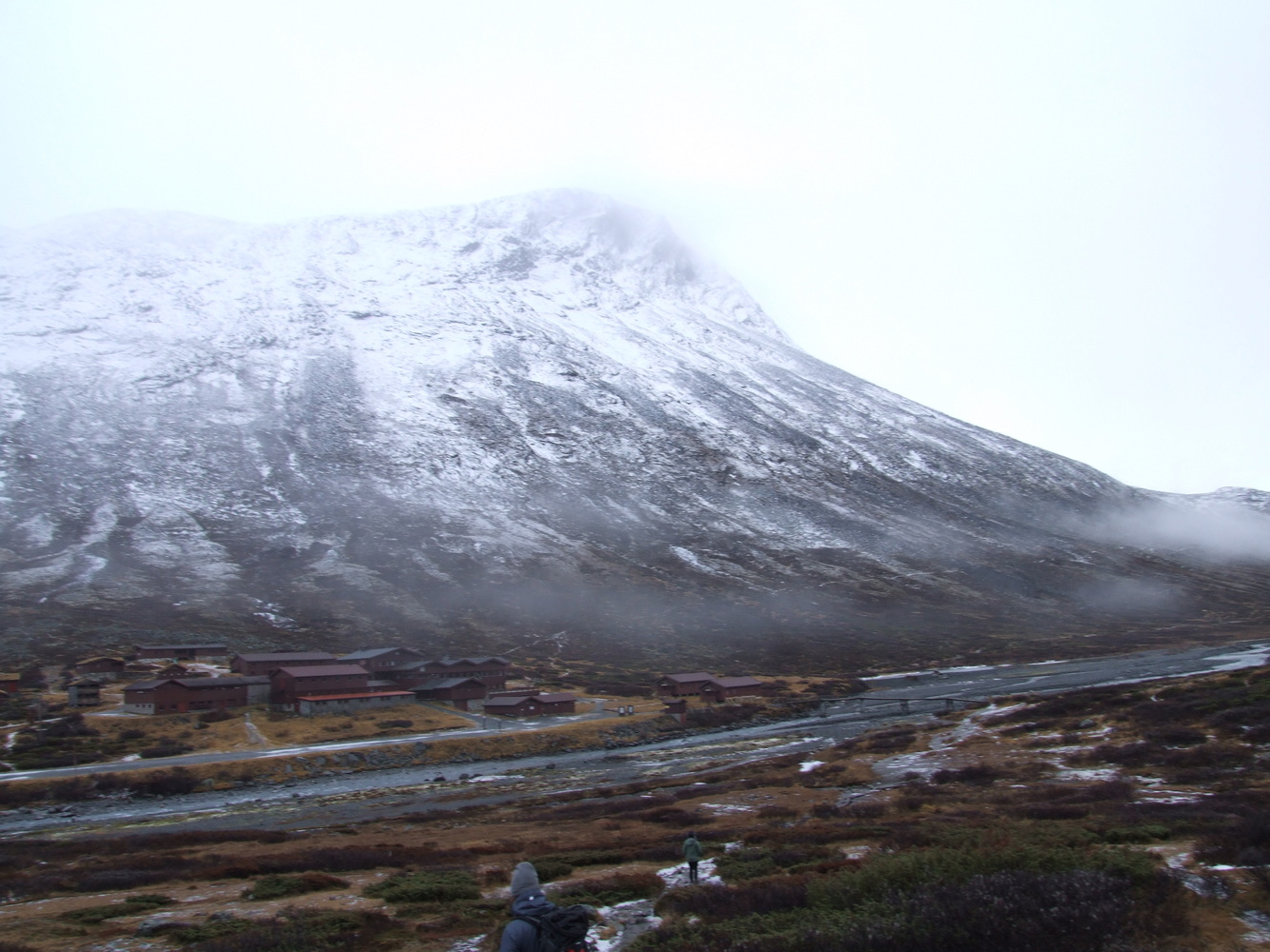 Så här gick det till. Jag hade under en tid tittat på en webkamera som är placerad vid Spiterstulen fjällstation för att se väder och om det var barmark. Fjällstationen ligger i dalen mellan Galdhöpiggen och Glittertind som så vackert är namnen på de två omgivande fjälltopparna som dessutom är de två högsta bergen i norden. Från kamerans vinkel kunde jag bara se den nedre delen av de omgivande bergen och med den informationen så såg dalen ut att vara snöfri och tillgänglig för en topptur trots att det var i slutet på Oktober. Säsongen för höstvandringar var egentligen redan slut och Spiterstulen stationen var stängd i väntan på vintersäsongen. Men då jag gillar att vara ute när det är färre människor på lederna så var det mest positivt att det var stängt.