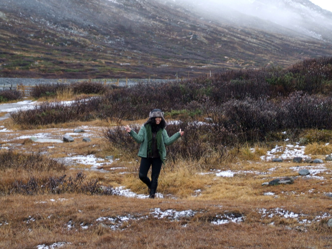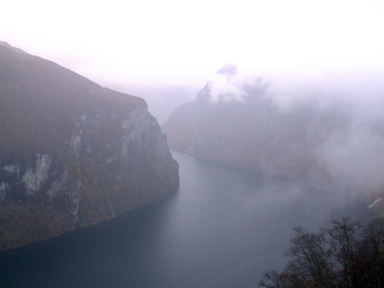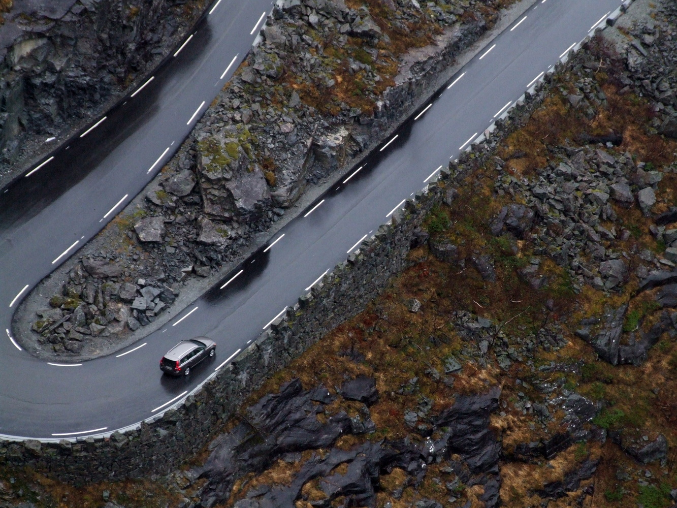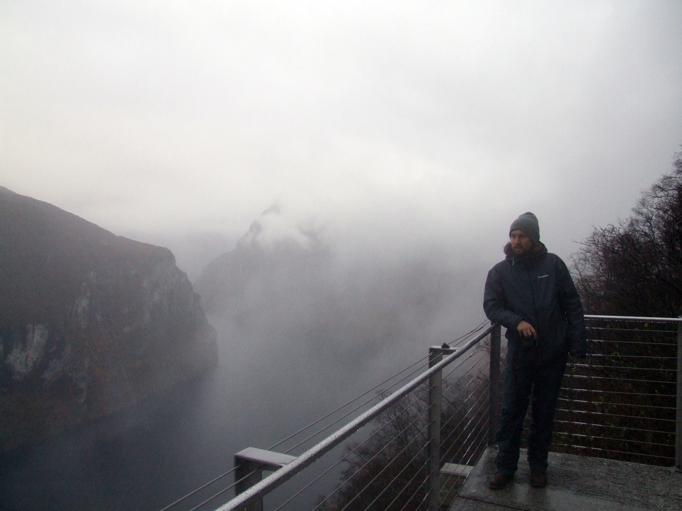 Den här platsen brukar vara full med turister så att få undersöka den och få ha den för sig själv vägde väl upp att vädret inte var det bästa. Utsikten ner över serpentinvägen med vattenfallen som sipprar ut från bergssidorna var häpnadsväckande. Det museum som finns på passets topp om dess historia var stängt och vägen skulle stänga för säsongen dagen därpå fick vi reda på av en lokalbo. Vi var mycket glada över att fått hinna se och uppleva den här utsikten innan vi fortsatte mot Geirangerfjorden och vattenfallet de sju systrarna som bland annat varit flitigt porträtterat i TV-serien Vikings vinjett. Lite ödmjukare inför vinterbestigning och med nya erfarenheter och lärdommar vände jag och mina vänner därefter hemåt.