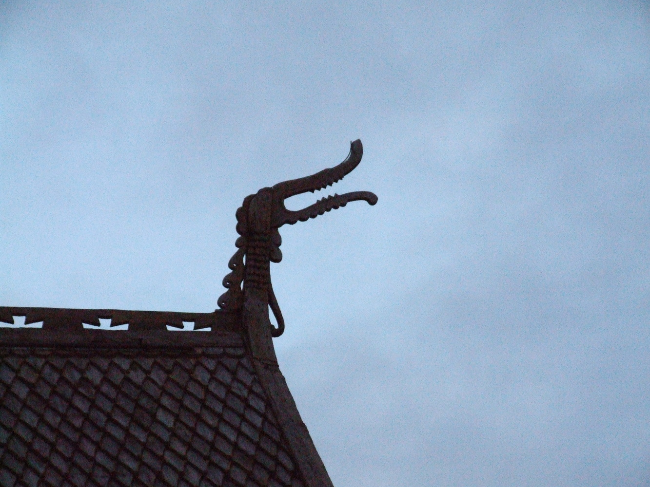 Vi tog tillfället i akt att åka och titta på några andra vackra platser då vi hade en hel dag till till vårt förfogande innan vi behövde återvända. Vi hade pratat om att det vore intressant att köra igenom Trollstigen som är en väg som ligger mycket vacker upp över ett bergspass på 850 m.ö.h. i Romsdalen. Den är stängd under vintern men vi hoppades att den skulle vara körbar då det inte hade snöat så mycket. Men först stannade vi till vid en vacker Stavkyrka som är karaktäristiskt i Norge.