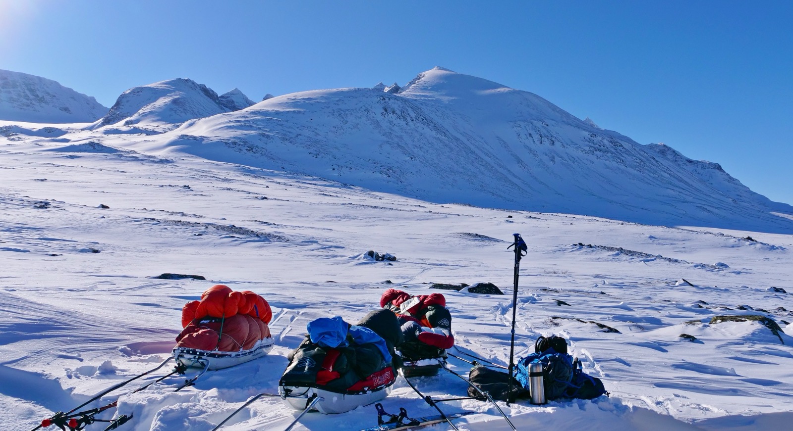 Efter en jobbig tågresa hem från vårt äventyr i Sarek som slutade med 12 timmars försening och hemkomst igår runt ett på natten, har jag idag hunnit landa lite i alla intryck och vill därför dela med mig av hur jag upplevde allt. Som helt ny både på skidor, och på vinterexpedition över huvud taget är intrycken ganska överväldigande. Eftersom jag endast vandrat vår, sommar, höst innan så var kontrasterna mot vad det innebär att vara på en extrem vintertur väldigt stora. Att jag heller inte skidat tidigare gjorde att min inlärningskurva var brant på alla vis. Jag ska försöka redogöra lite för hur jag känslomässigt och mentalt tog mig an och upplevde det här.